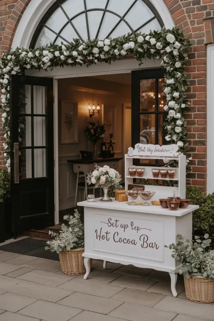What’s more welcoming on a cold day than a warm drink? Set up a small, stylish hot cocoa bar just inside the entrance. Offer guests a cup as they arrive to warm them up.